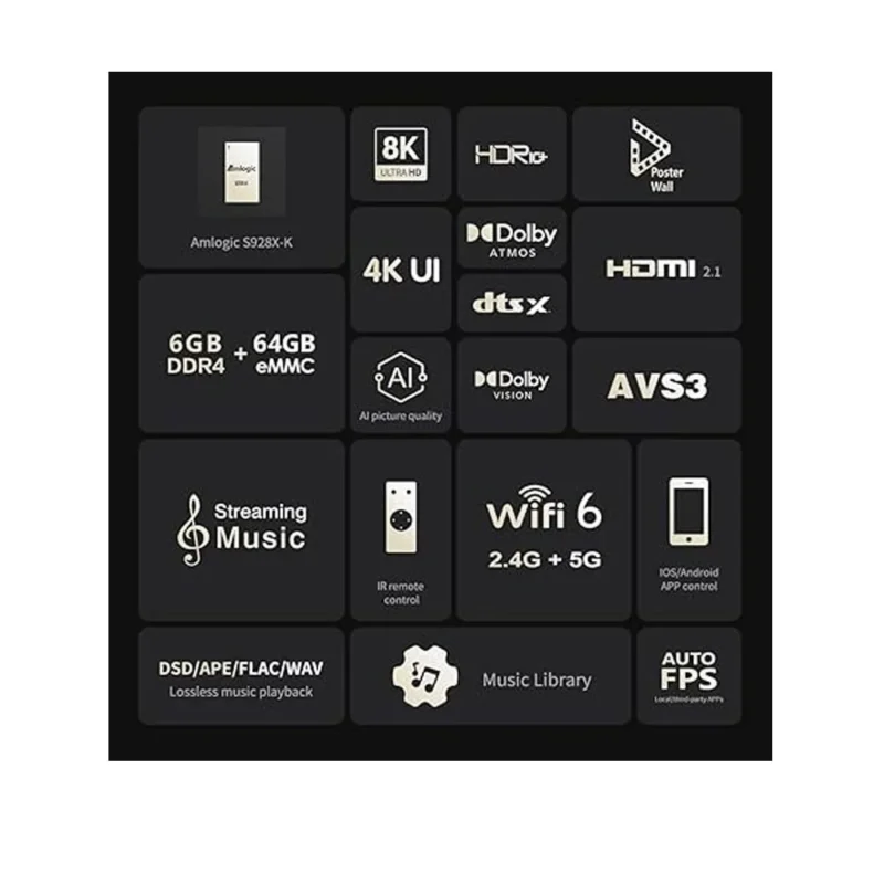 - Operating System & Processor: Android 11, Amlogic S928X-K processor with 6G+64G memory