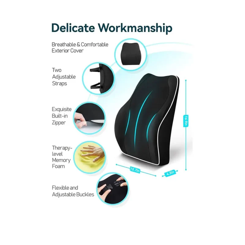 - Primary Use: Provides lumbar support during long periods of sitting in car seats, office chairs, or gaming chairs; helps maintain proper posture and reduces back fatigue.